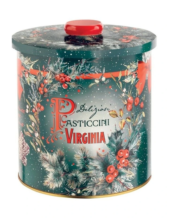 Butter biscuits of different shapes in holly barrel tin, a perfect idea for a tasty Christmas present.