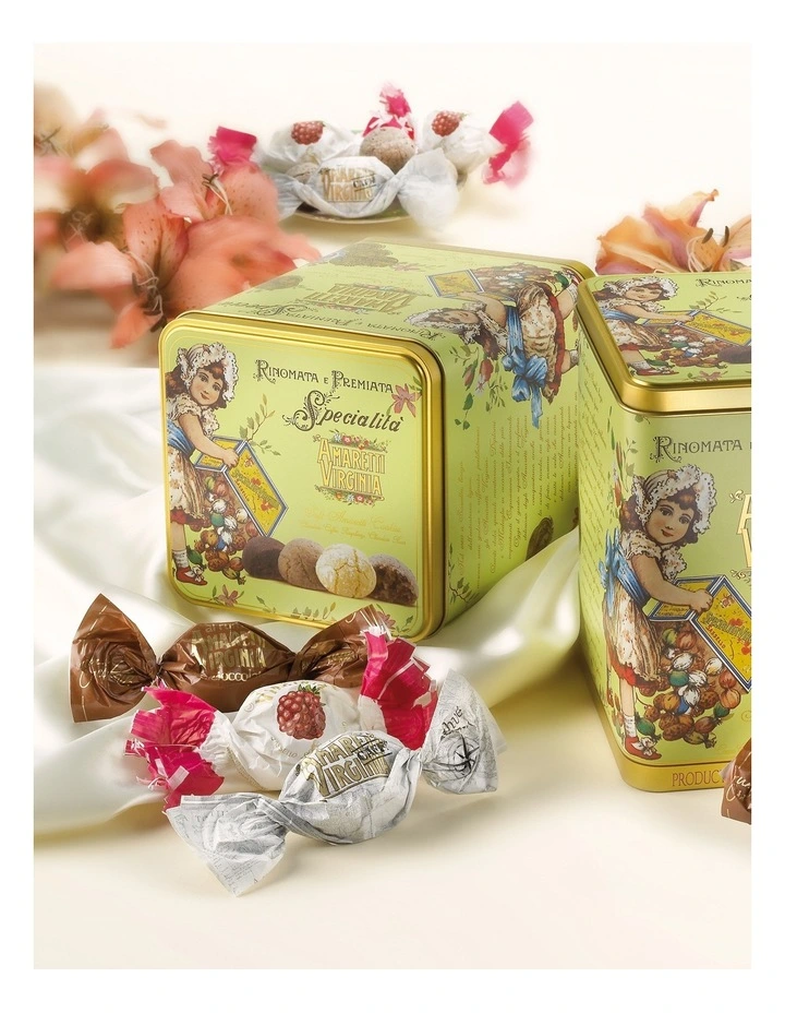 The soft amaretti Virginia are made following the traditional recipe of 1860. These sweet biscuits are made with crushed almond and apricot kernels. They are perfect for enjoy on their own or with coffee. You can serve them with wine ora liqueur. Amaretti are also very good as topping crumbled over gelato or your favourite dessert.