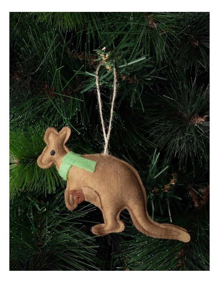 AUSTRALIAN HOUSE & GARDEN Eucalyptus 8cm Light Brown Fabric Stitched Kangaroo wearing a Red Scarf