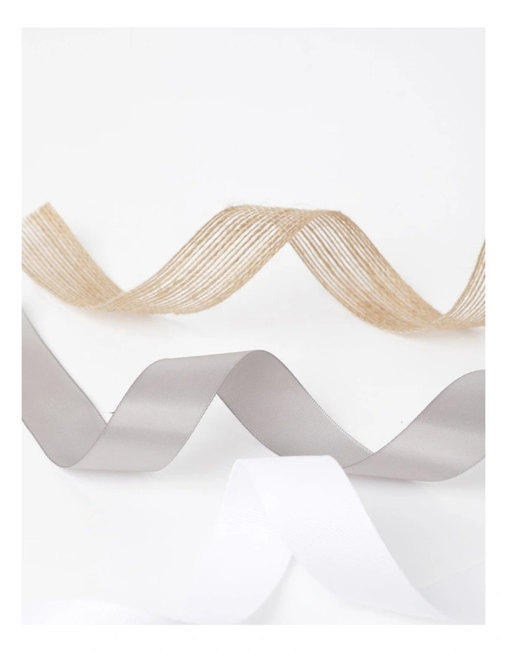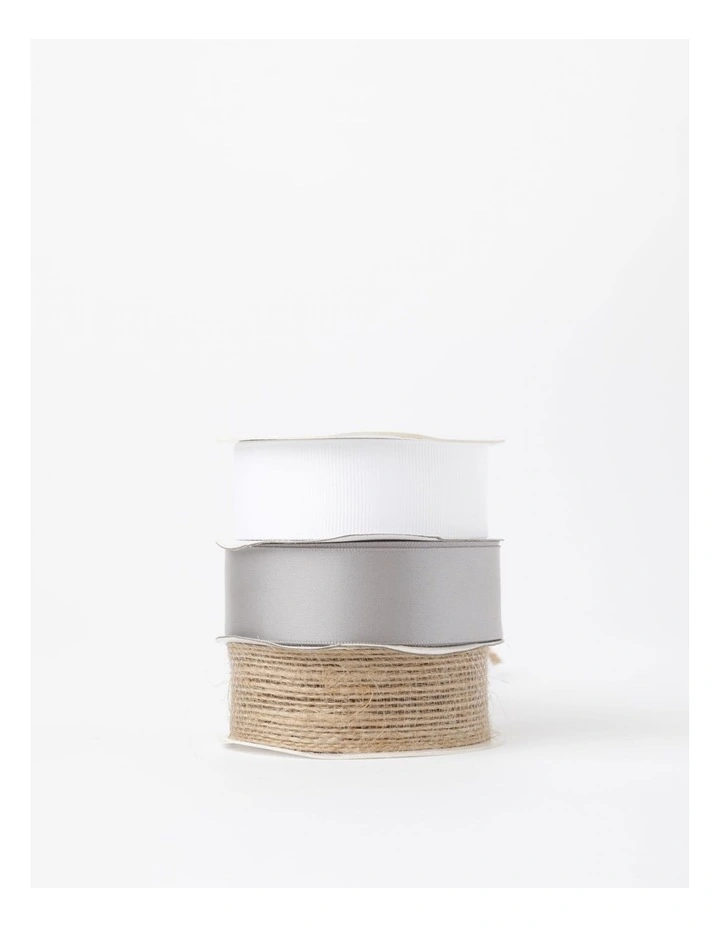 Australian House & Garden Eucalyptus 3pk Ribbon 3m in White Grossgrain/Silver Satin/Hessian