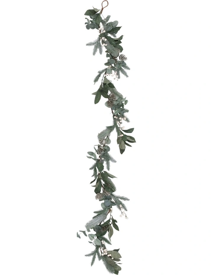 AUSTRALIAN HOUSE & GARDEN Eucalyptus White Berries and Silver Plastic Pinecones Leave Garland