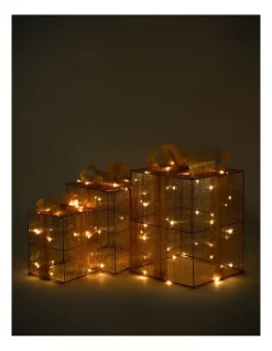 Budget π Myer Giftorium LED Gold-tone Thread Wrapped Gift Box Decoration Set Of 3 In Gold π
