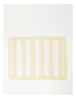 New π€© Australian House & Garden Fringed Linen Placemat Set Of 4 Wide Stripe In Yellow βοΈ