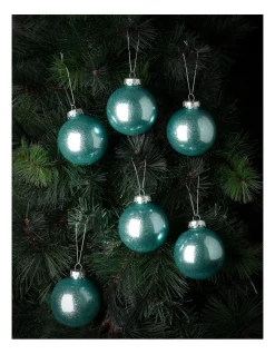 Flash Sale 𧨠Myer Giftorium Luxe 6Pk Plastic Clear Bauble With GlitterMint: 8 Cm π