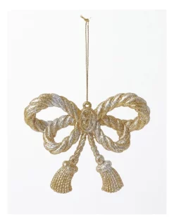 New π Myer Giftorium Heirloom Glitter Plastic Tassled Bow OrnamentGold: 9 Cm π