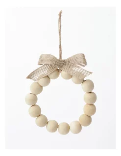 New π Australian House & Garden Eucalyptus Wooden Bead Wreath OrnamentWhite/Natural: 10cm π―