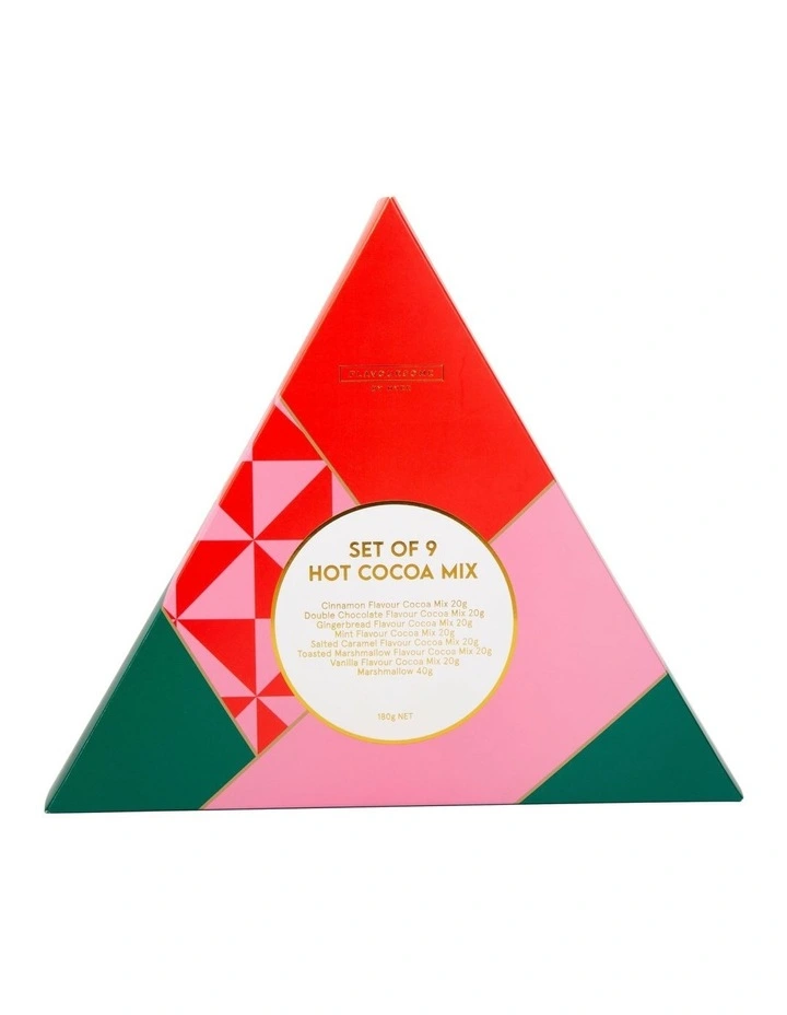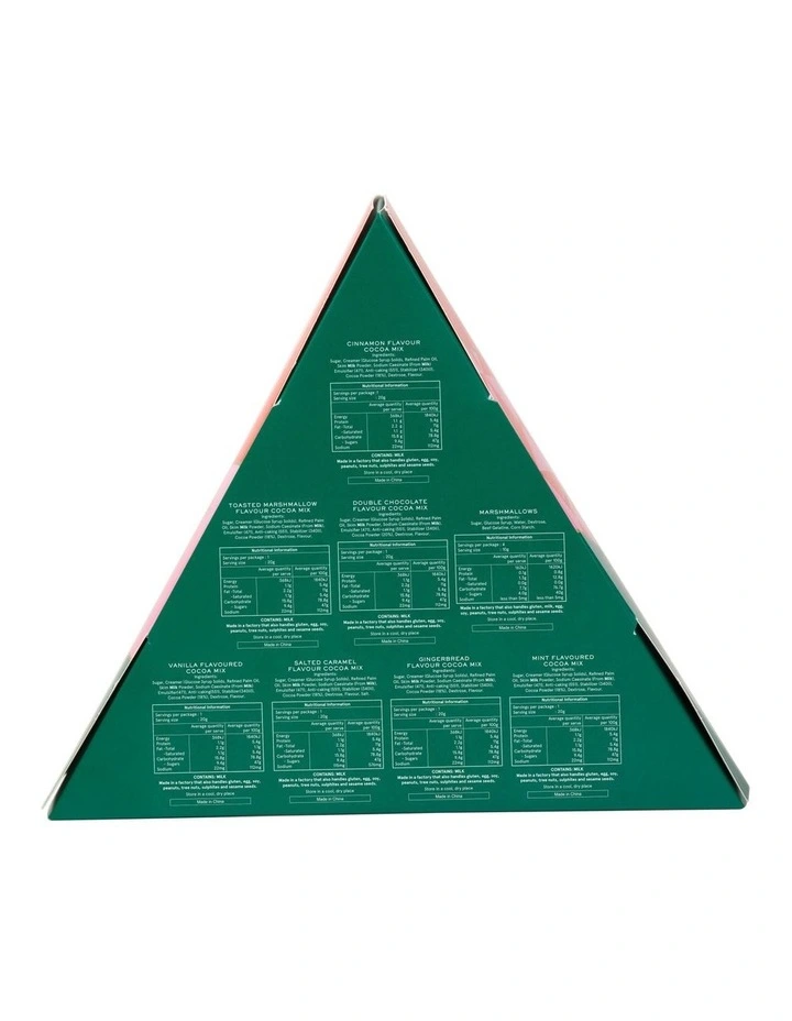 Product Ingredients: Set includes:1 x Cinnamon Flavour Cocoa Mix 20g1 x Toasted Marshmallow Flavour Cocoa Mix 20g2 x Marshmallows 20g1 x Double Chocolate Flavour Cocoa Mix 20g1 x Vanilla Flavour Cocoa Mix 20g1 x Salted Caramel Flavour Cocoa Mix 20g1 x Gingerbread Flavour Cocoa Mix 20g1 x Mint Flavour Cocoa Mix 20g