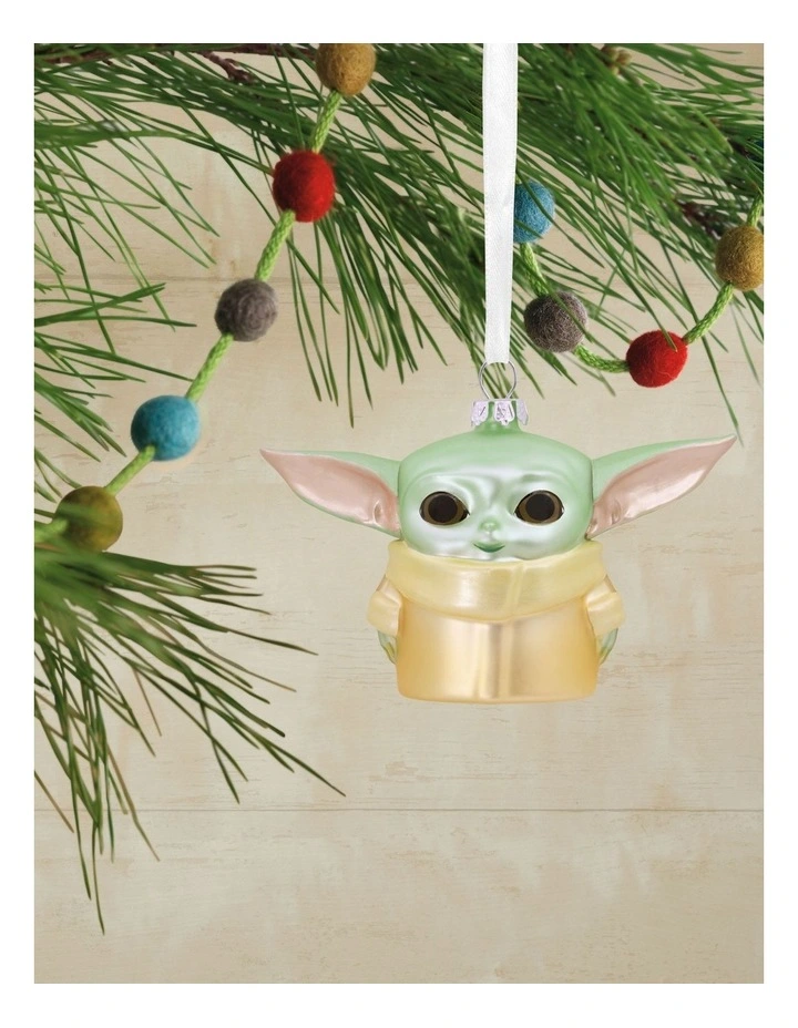Bring home the excitement of “The Mandalorian” with this stylized blown-glass Christmas ornament of the Force-sensitive alien Grogu, also affectionately referred to by fans as Baby Yoda.