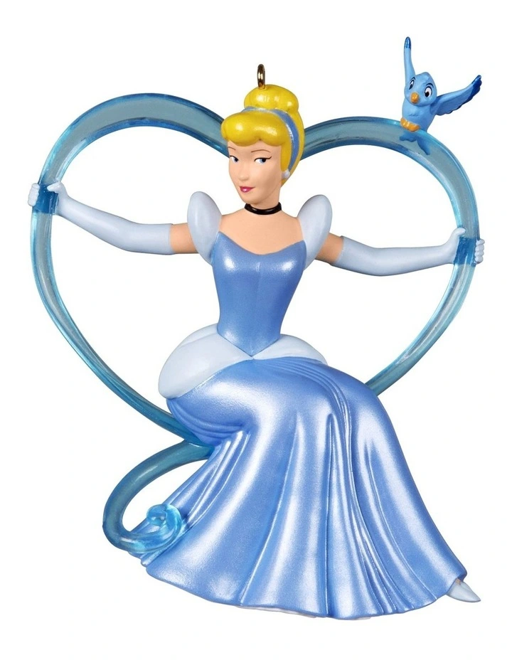 Sitting in a shimmery blue heart – complete with a charming bluebird perched on top – Cinderella adds regal style to your holiday decor.