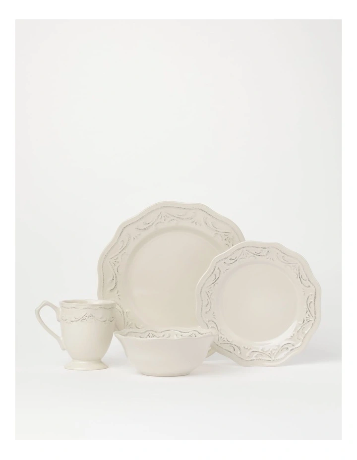 Heritage Luxe Vintage Scalloped 16 pcs Dinner Set in White