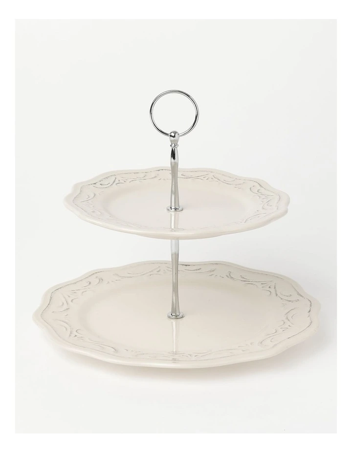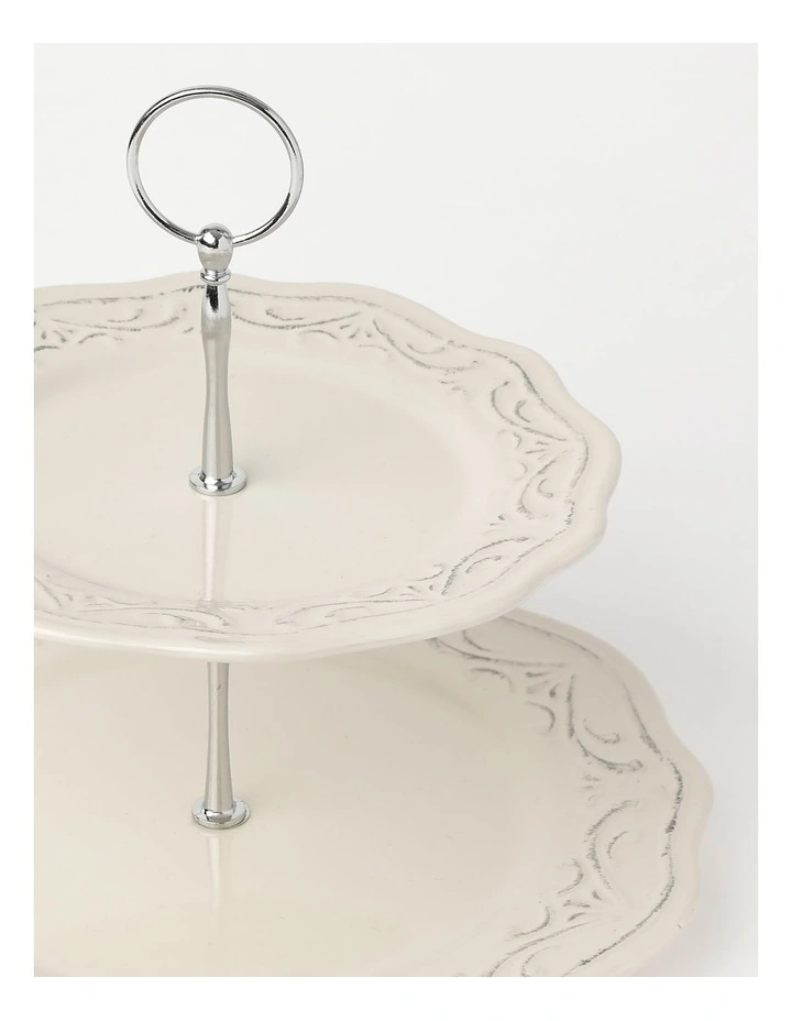 HeritageΒ Luxe Vintage Scalloped 2 Tiered Cake Stand in White
