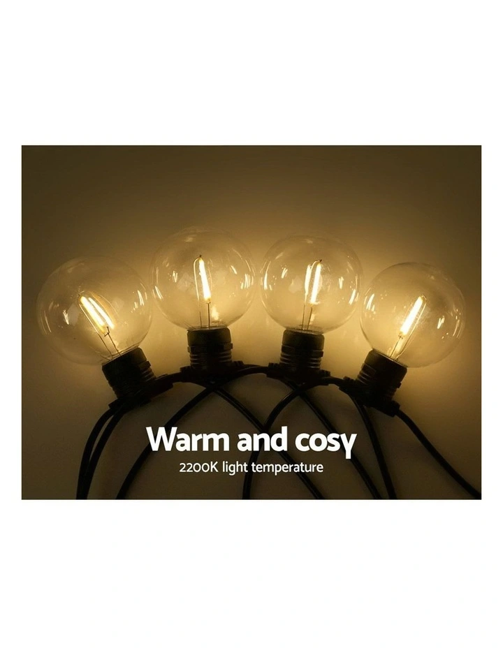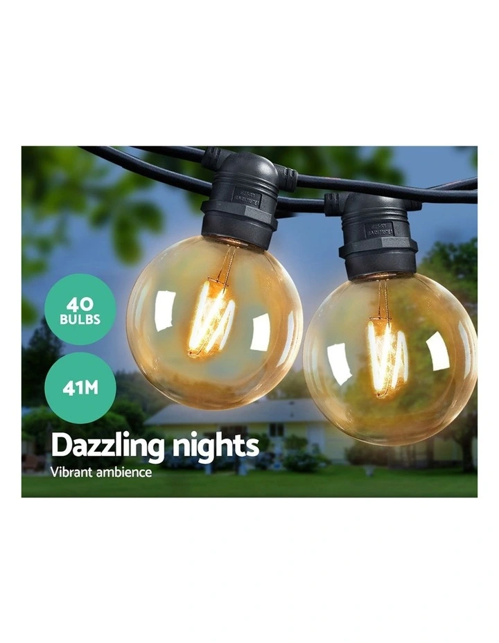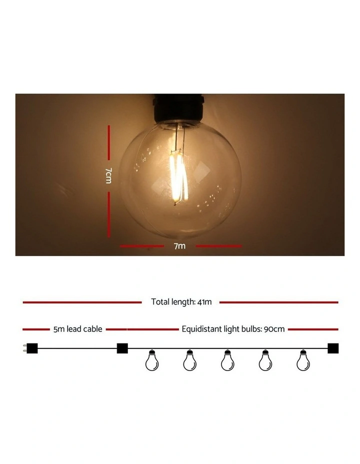 Our Jingle Jollys Festoon String Lights are great not only for wedding and birthday parties or special events, but also for creating a warm, inviting ambience with its bright and mellow glow. Suitable for both indoor and outdoor use, its IP44 rating means that it can be used in the rain and all weather conditions. Each bulb draws a very low voltage and is placed 90cm equally apart from each other throughout its 41m length for an even distribution of illumination and brightness. Not least, the each bulb has a 20,000 hours lifespan so that you can get to use the string lights for quite a while.