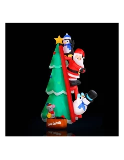 Spread some good cheer this Christmas with the Jingle Jollys 2.2m Inflatable Santa and Tree set. An eye-catching and vivid display that will certainly brighten up the spirit of the season. Made of weather-resistant polyester fabric, our inflatable Christmas dcor comes with great features such as built-in lighting projection, five cool white LEDs and a built-in fan for easy inflation. Also pegs and ropes included to ensure our cheerful ensemble stand strong, firm and steady all season long. Comes with zipper for fast deflation. Not least, use the ensemble outdoors or indoors with minimum hassle.