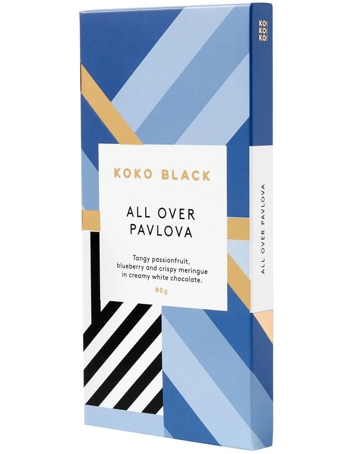 Koko Blacks delicious re-imaginingΒ of the classicAustralian pavlova in a chocolate block. Creamy white Belgian chocolatecontaining real passionfruit, berries, and meringue pieces. Lovingly hand madein Melbourne using the finest natural ingredients. A perfect indulgent gift forloved ones this Christmas, or a special treat just for you!