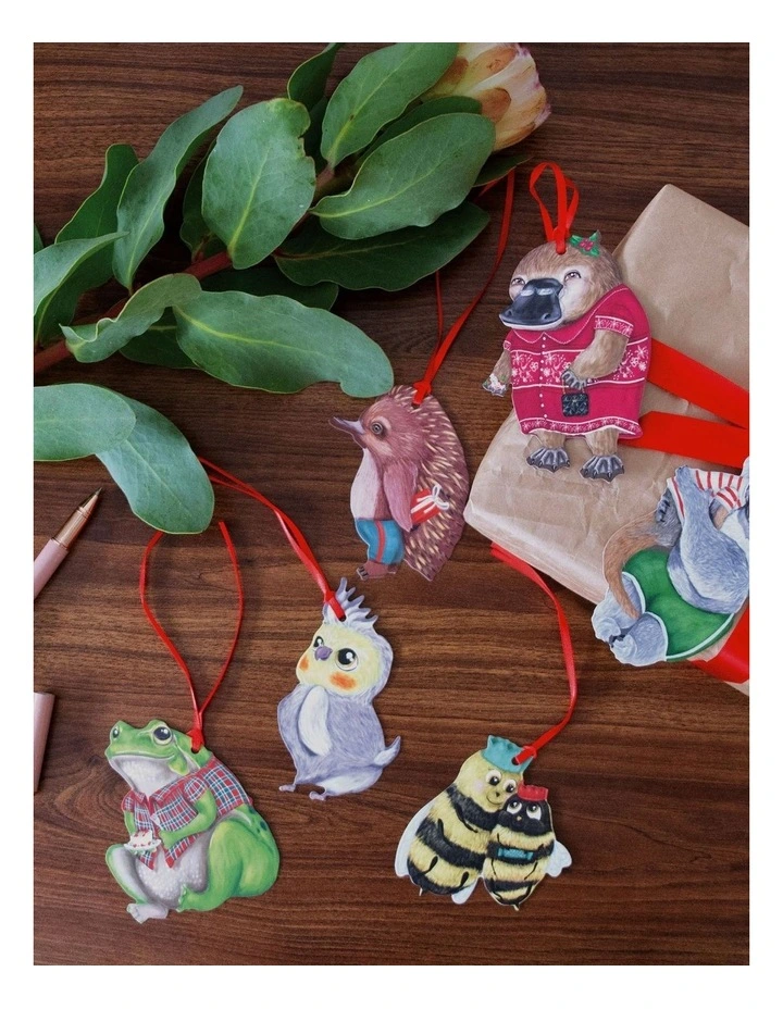 Set of 6 individual illustrated Christmas gift tagsΒ showcasing an Australian-themed Christmas featuring our beloved native critters, illustrated by Murilo Manzini.