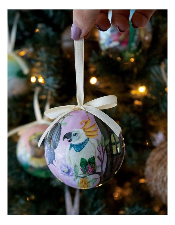 Set of 6 individual small illustrated baubles showcasing an Australian-themed Christmas featuring our beloved native critters, illustrated by Murilo Manzini. Comes in a decorated solid gift box, perfect for storing away with your decorations at the end of the season.