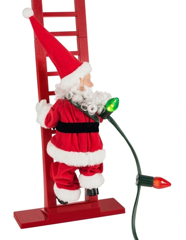 For two generations, Super Climbing Santa from Mr. Christmas has been decorating homes all over the world. An adorable Santa in a fabric outfit climbs up and down a red 40″ ladder, never tiring. The included arm and clamp allows you to attach Santa’s ladder to any tree or lean him against a wall. Santa is carrying a string of LED lights to decorate with. At the base of the light string is Santa’s bag which plays 15 Christmas carols. Volume control allows you to enjoy with or without music. AC adapter operated. Always stepping, never tiring, Super Climbing Santa will be a cherished part of your Holidays for years to come.