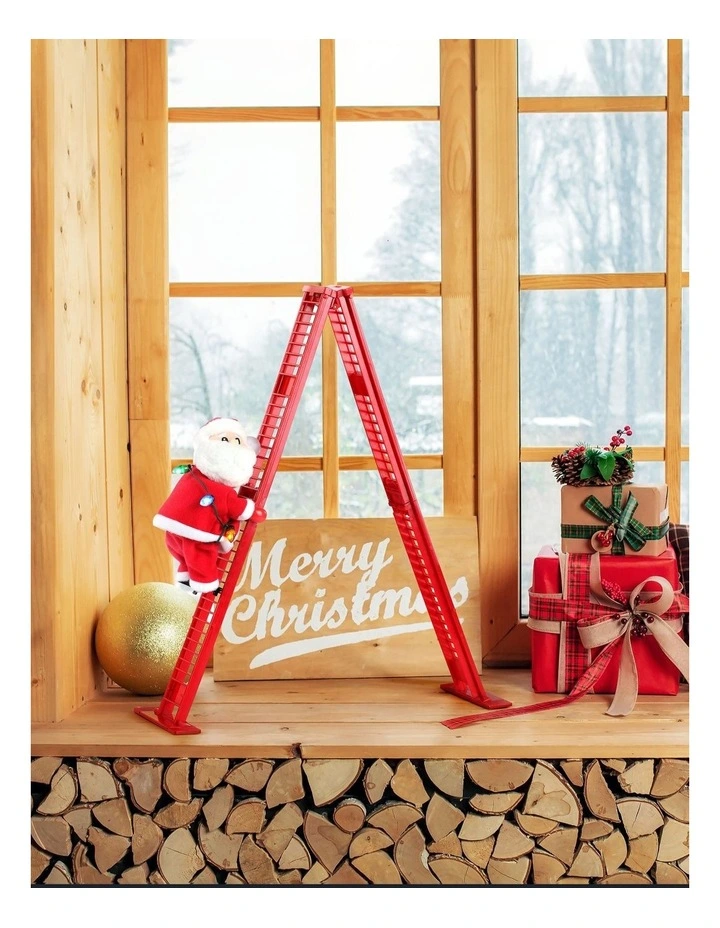 Tabletop Super Climbing Santa from Mr. Christmas is ready to decorate your miniature tree. A highly detailed plush Santa in a real fabric outfit climbs up and down a 17″ red ladder, never tiring. The double ladder makes for easy setup and worry-free balance so you can display Santa on your table, mantel, or even your windowsill. Santa carries a string of LED lights to decorate with, and as he climbs, 3 Christmas carols play. Volume control allows you to enjoy with or without music, and the battery-powered operation lets Santa climb all day without interruption. Always stepping, never tiring, Tabletop Super Climbing Santa will be a cherished part of your Holidays for years to come.