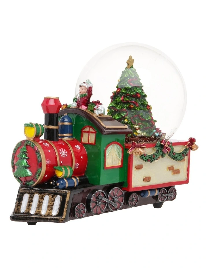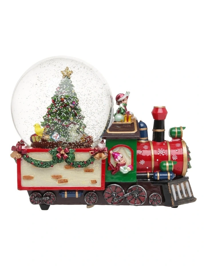 MYER GIFTORIUM Heirloom True Red Polyresin Train with Christmas Tree inside globe Wind up Music Snowglobe