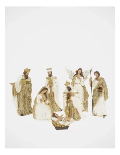 MYER GIFTORIUM Heirloom 22cm Gold and Ivory Polyresin Nativity Set