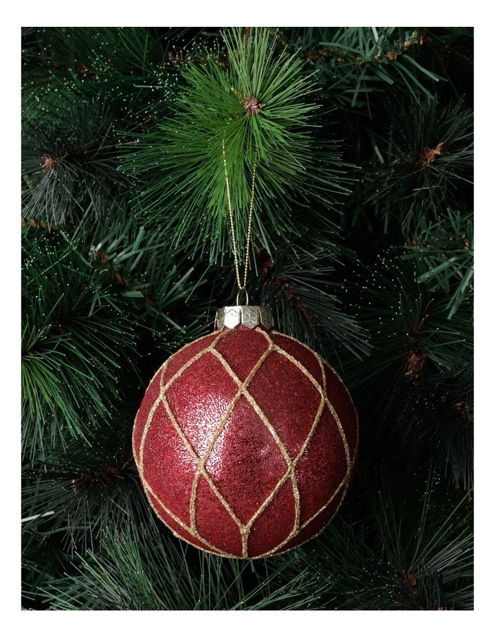 Myer Giftorium Heirloom Glass Beaded Diamond Grid Bauble- Red: 8cm