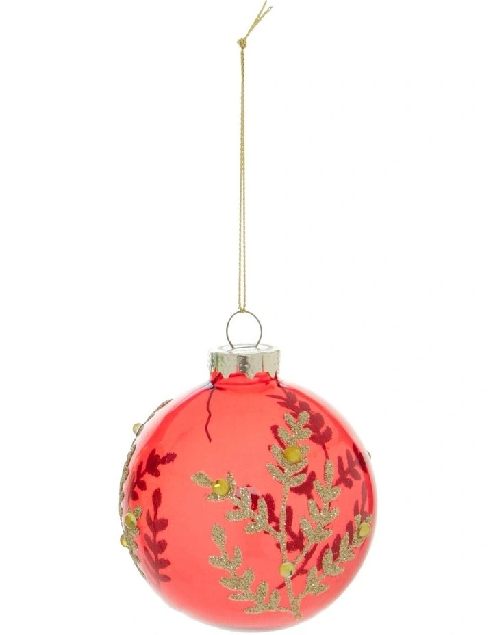 Myer Giftorium Heirloom Glass Glittered Leaf Bauble – Red: 8cm