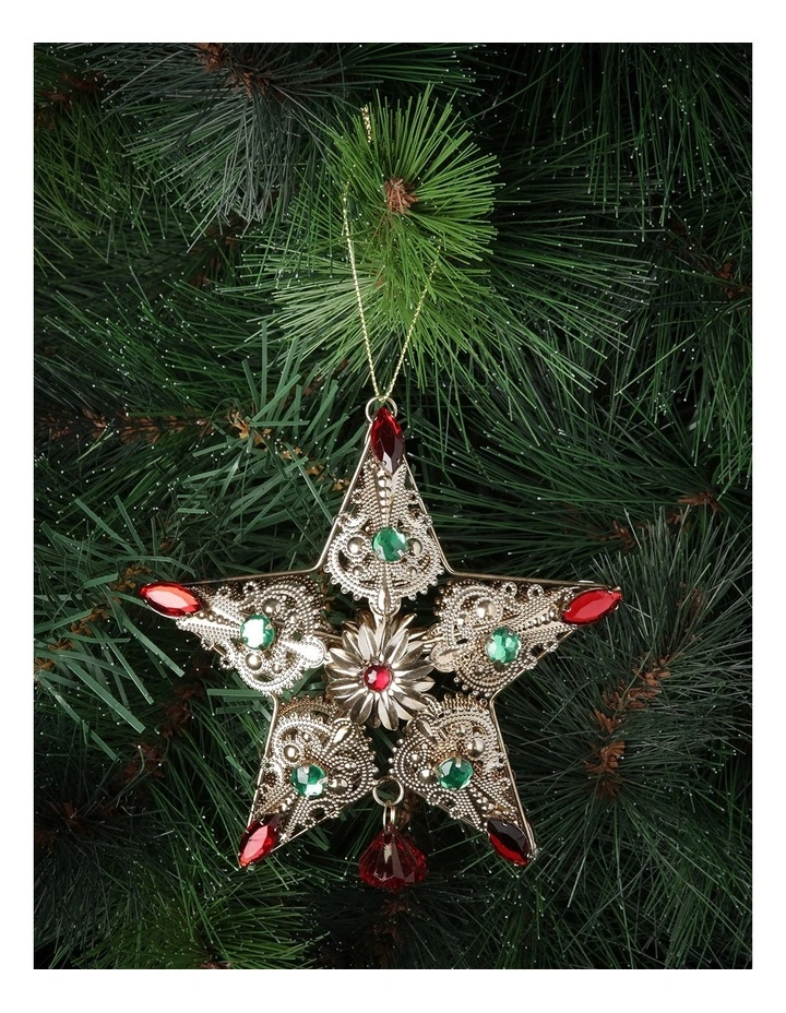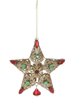 MYER GIFTORIUM Heirloom Rustic Gold Wire Star with Red and Green Gems
