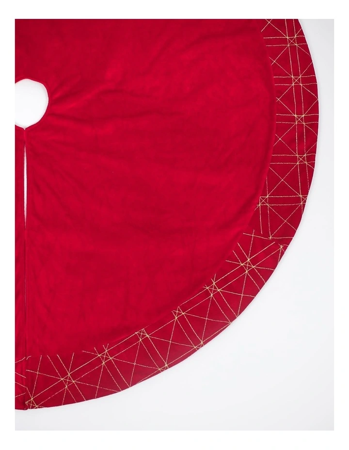 Myer Giftorium Heirloom Velvet Lattice Border Tree Skirt 120cm in Red
