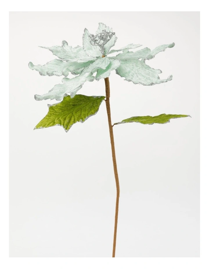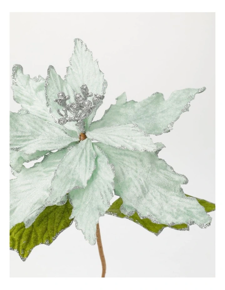 Myer GiftoriumΒ Luxe Fabric and Glitter Poinsettia Pick 50cm in Mint