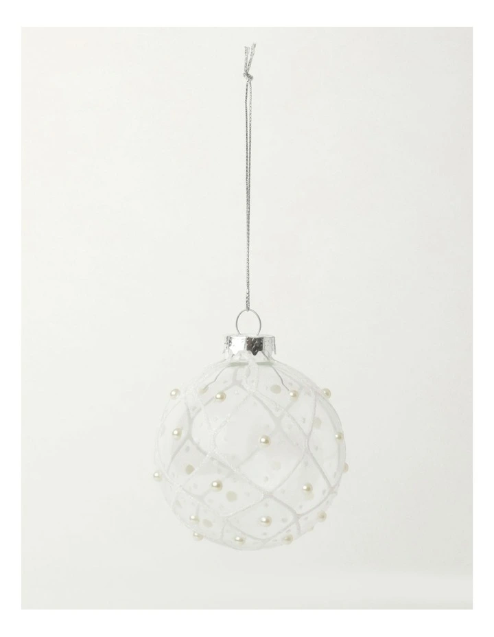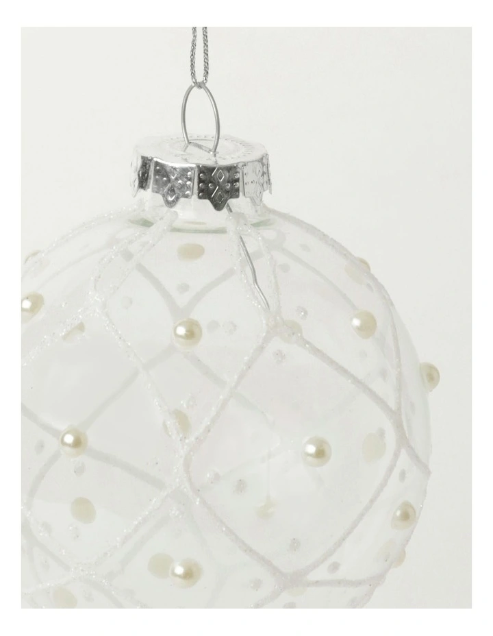 Myer Giftorium Luxe Glass Rounded Grid w/ Pearls Bauble- Clear: 8cm