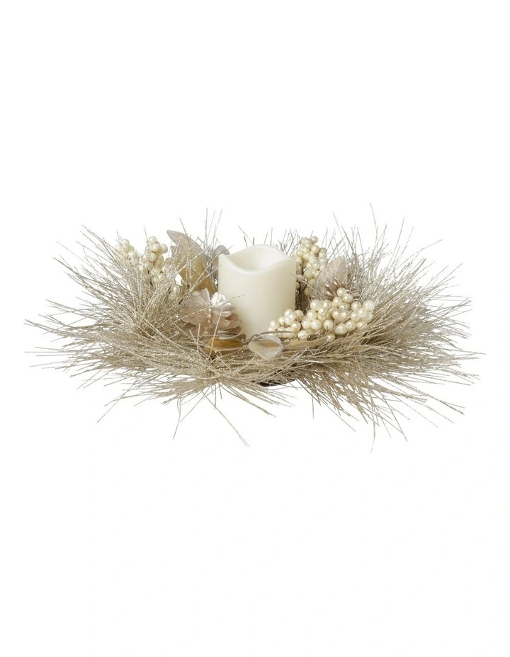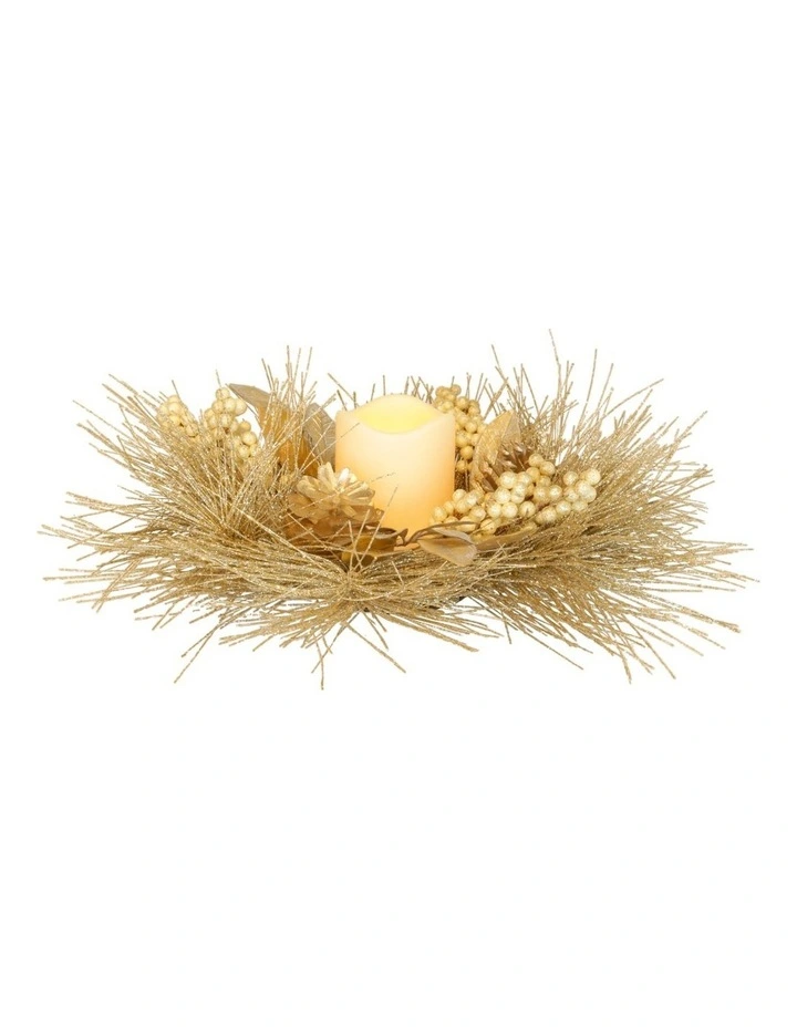 Myer Giftorium Luxe Glittered Pine, Faux Berry & Pinecone Hurricane
