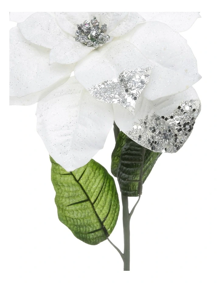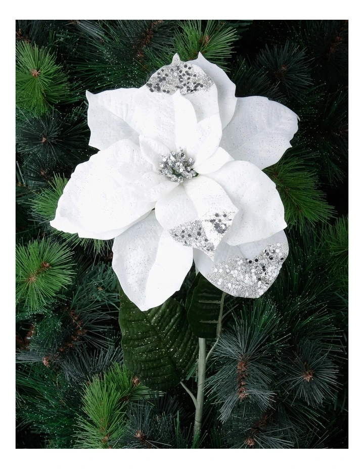 MYER GIFTORIUM Luxe White Poinsettia with Glitter Stem Pick