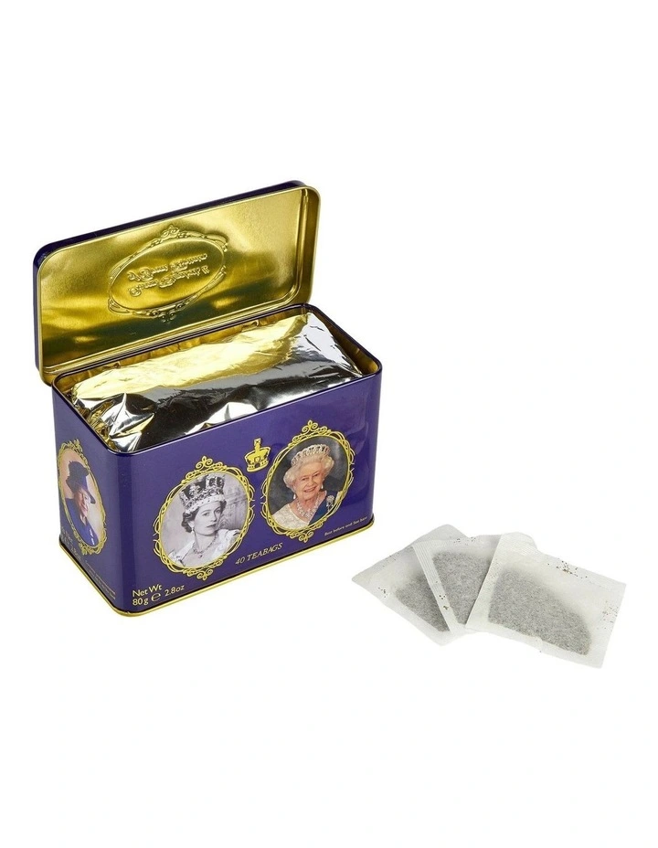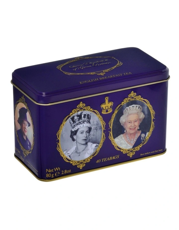 This special Queen Elizabeth II English Breakfast tea tin contains full flavoured English Breakfast Tea, rich, smooth and delicious. ContainsΒ 40 English Breakfast teabags.