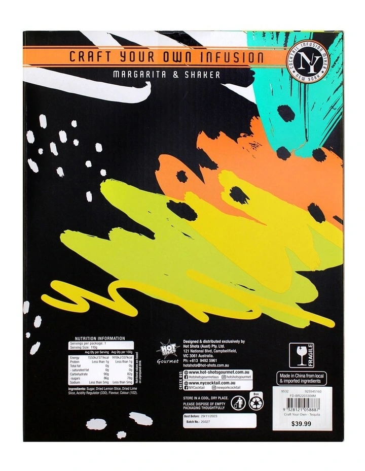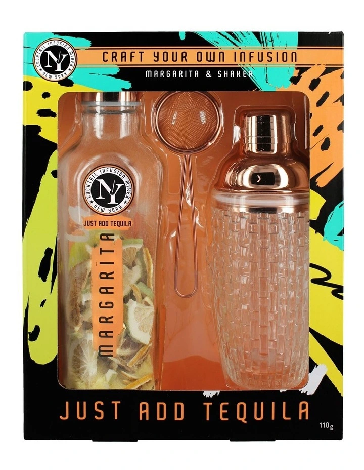 Margarita & Shaker Set includes – A glass shaker, a rose gold strainer & the cocktail mix.