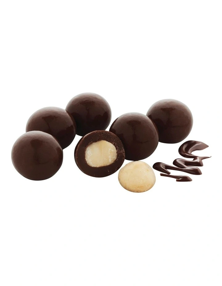 Roasted native Australian Macadamia nuts hand crafted with smooth premium dark chocolate. This pack contains 18 chocolate macadamias.