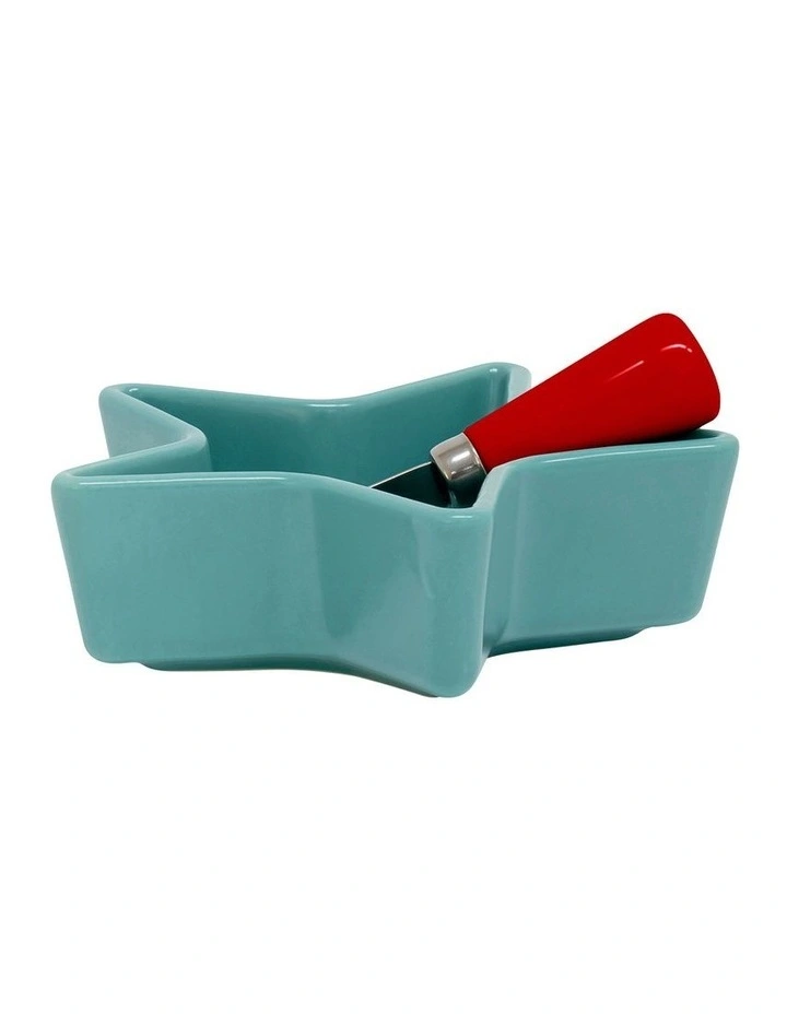 Made from stoneware and inspired by Australias summertime spin on the silly season is the 15cm Kringle Star Bowl & Spreader from salt&pepper. In a bright mint colour, this star shaped bowl with contrasting red handled spreader is the perfect set to have on hand for serving up dips and festive themed spreads and treats for family and friends as they drop by over the holidays. Finished in a matte glaze with plenty of popping colour, our Kringle Star Bowl & Spreader is guaranteed to bring extra merriment to your table.