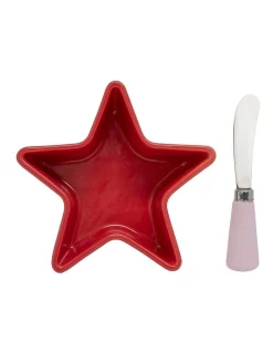 Made from stoneware and inspired by Australias summertime spin on the silly season is the 15cm Kringle Star Bowl & Spreader from salt&pepper. In a bright red colour, this star shaped bowl with contrasting pink handled spreader is the perfect set to have on hand for serving up dips and festive themed spreads and treats for family and friends as they drop by over the holidays. Finished in a matte glaze with plenty of popping colour, our Kringle Star Bowl & Spreader is guaranteed to bring extra merriment to your table.