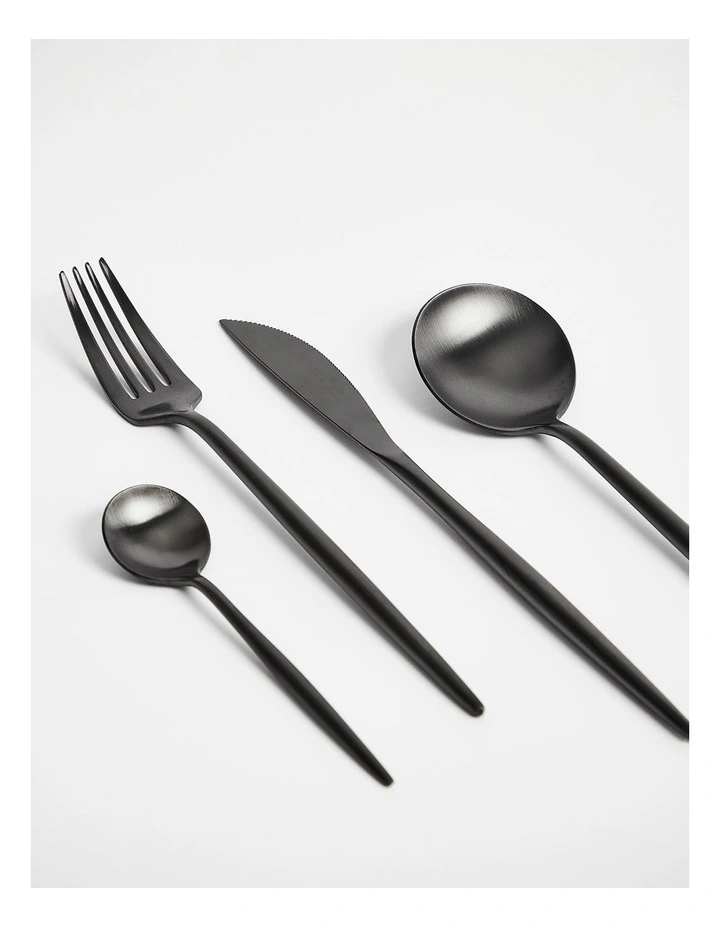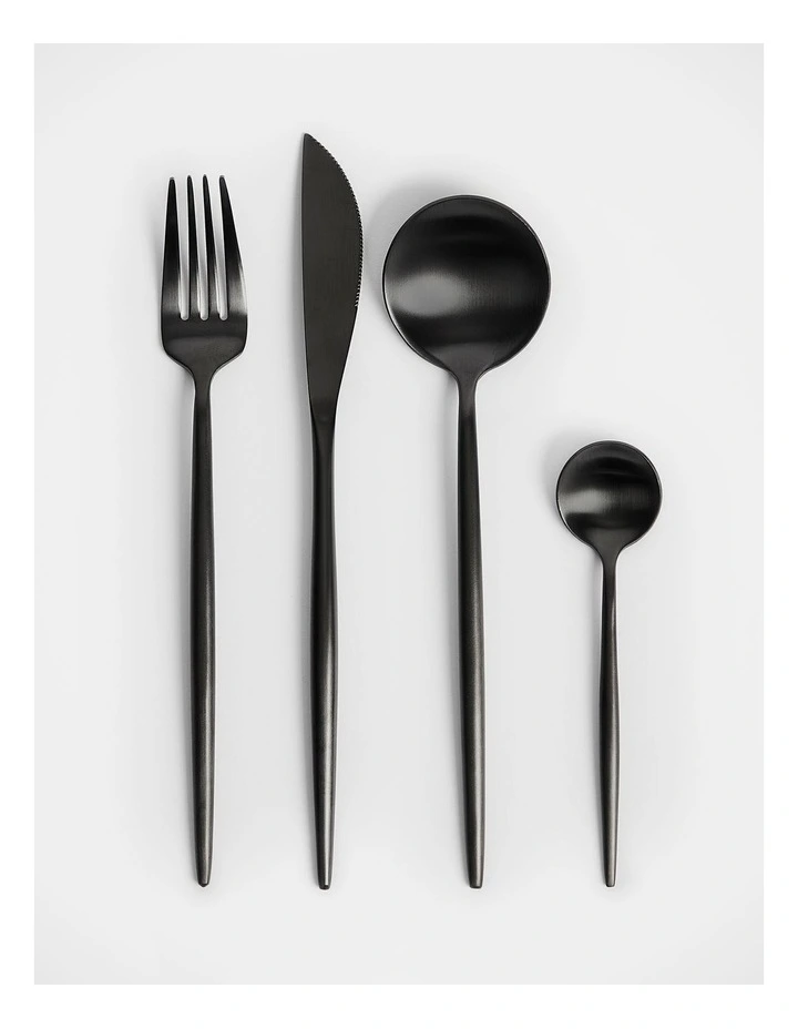 - Matte black finish cutlery set